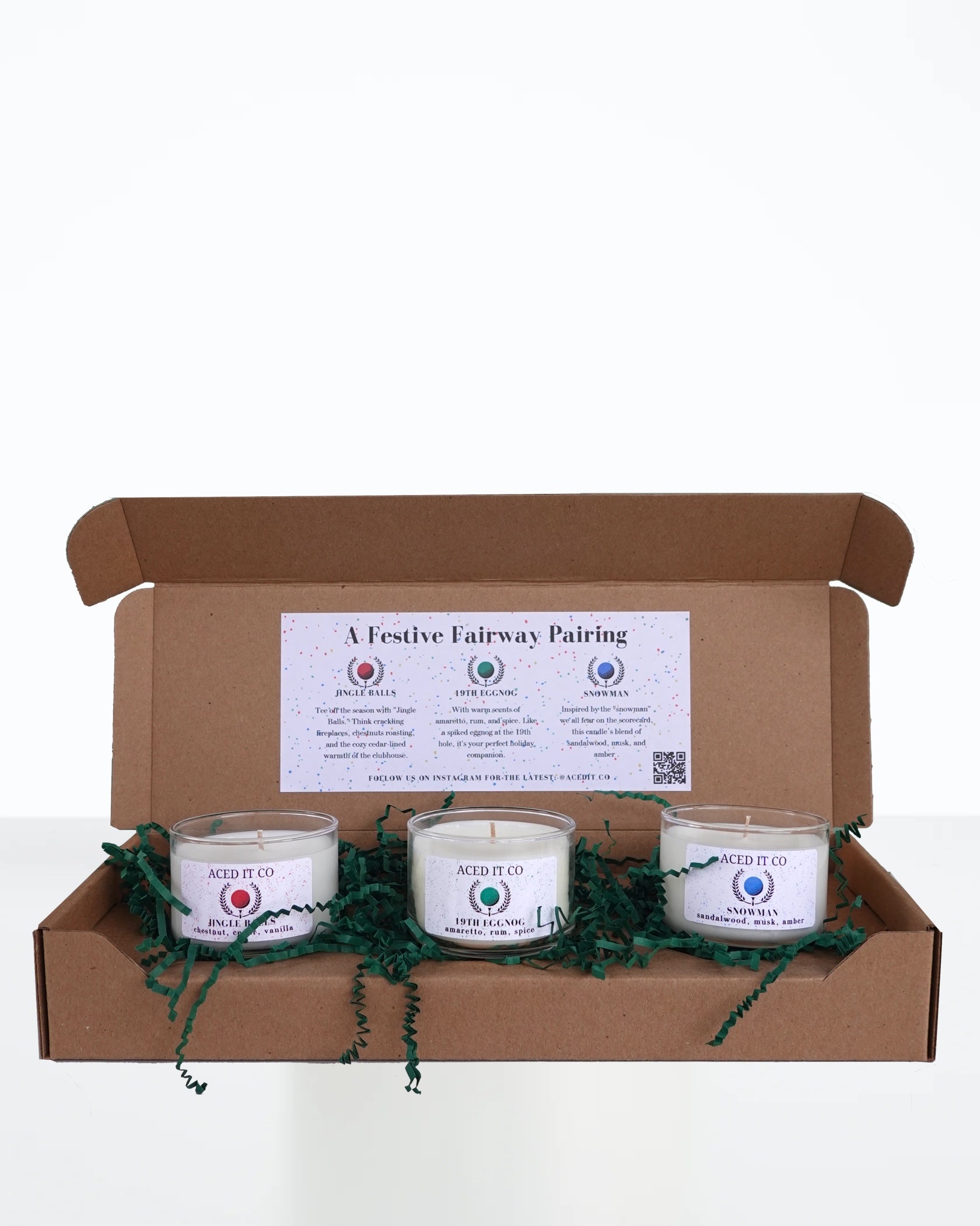 - The Snowman: Inspired by the "snowman" we all fear on the scorecard, this candle’s blend of sandalwood, musk, and amber reminds us that golf happens, ups and downs included. Light it, laugh, and embrace the season.